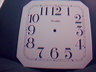 A 5/16 thick plywood dial with 6" time track. Height of 8 3/4" and width of 9". Similar to dials on Ethan Allen clocks. Logos have been removed.