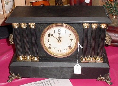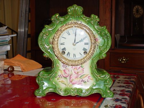 Recently rebuilt Sessions mantel clock with porcelain dial.